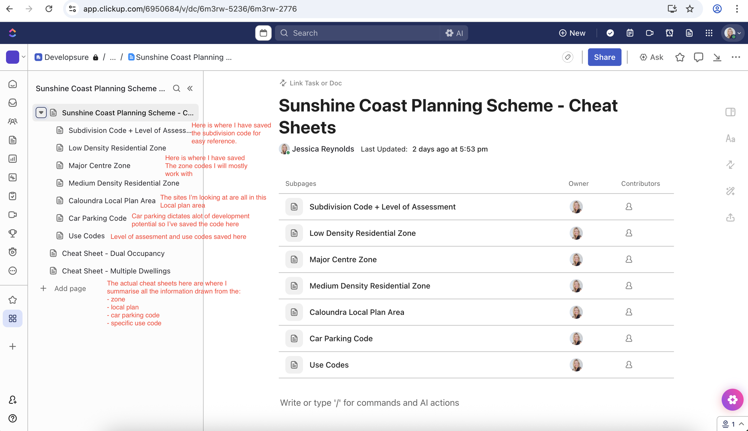 ClickUp: my go-to for documenting and organising everything (I use this for UPQ and DevelopSure).